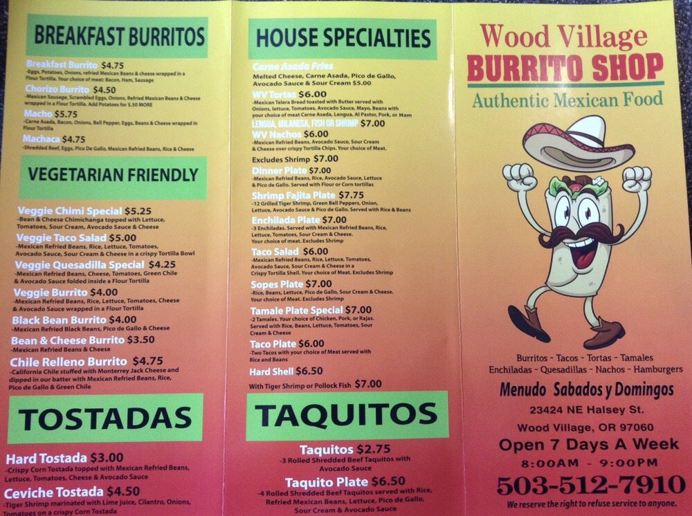 Wood Village Burrito Shop, located in Wood Village, OR, is a Mexican restaurant that offers a variety of options for its customers. With features like outdoor seating, vegan and vegetarian options, and a menu suitable for breakfast, lunch, and dinner, this casual spot caters to a wide range of preferences. The restaurant also provides amenities such as waiter service, Wi-Fi, and catering options. Customers rave about the delicious food at affordable prices, with favorites like the burritos and homemade salsas standing out. The cozy atmosphere and friendly service make Wood Village Burrito Shop a go-to spot for Mexican cuisine in the area. Whether you're looking for a quick bite or a place to enjoy a meal with friends and family, this restaurant has something for everyone.